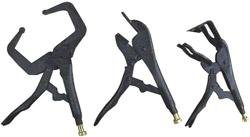 Drop forged jaws made of the highest grade carbon steel. Clamp grip is made of high tensile carbon steel. Precisely heat treated and hardened for maximum strength. Black plated for rust resistance. Practically any item can be held with tremendous force, and will not come loose while being worked on. Use for all simple or awkward welding jobs. Contains: 8" sheet metal clamp, 9" welding clamp, 11" locking C clamp